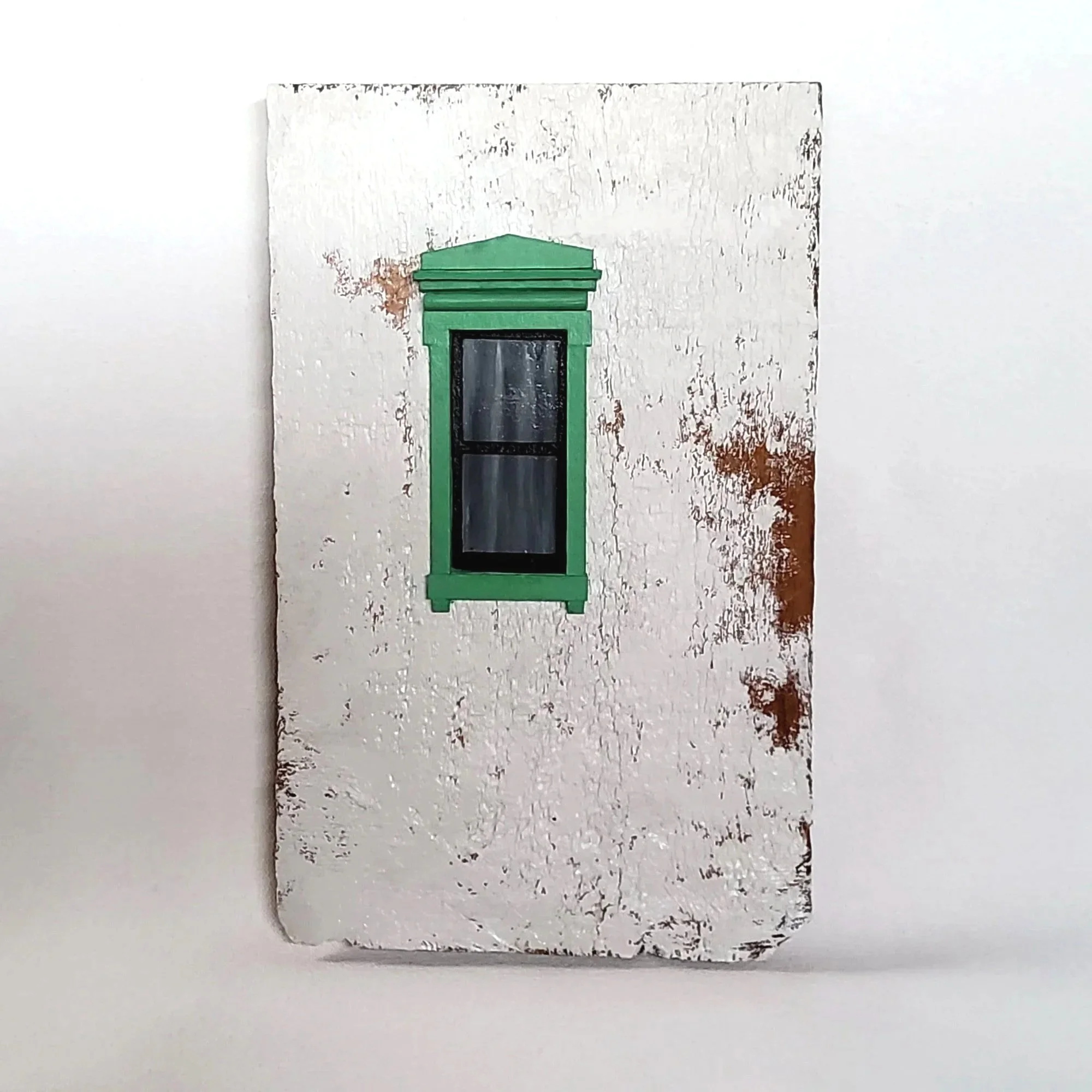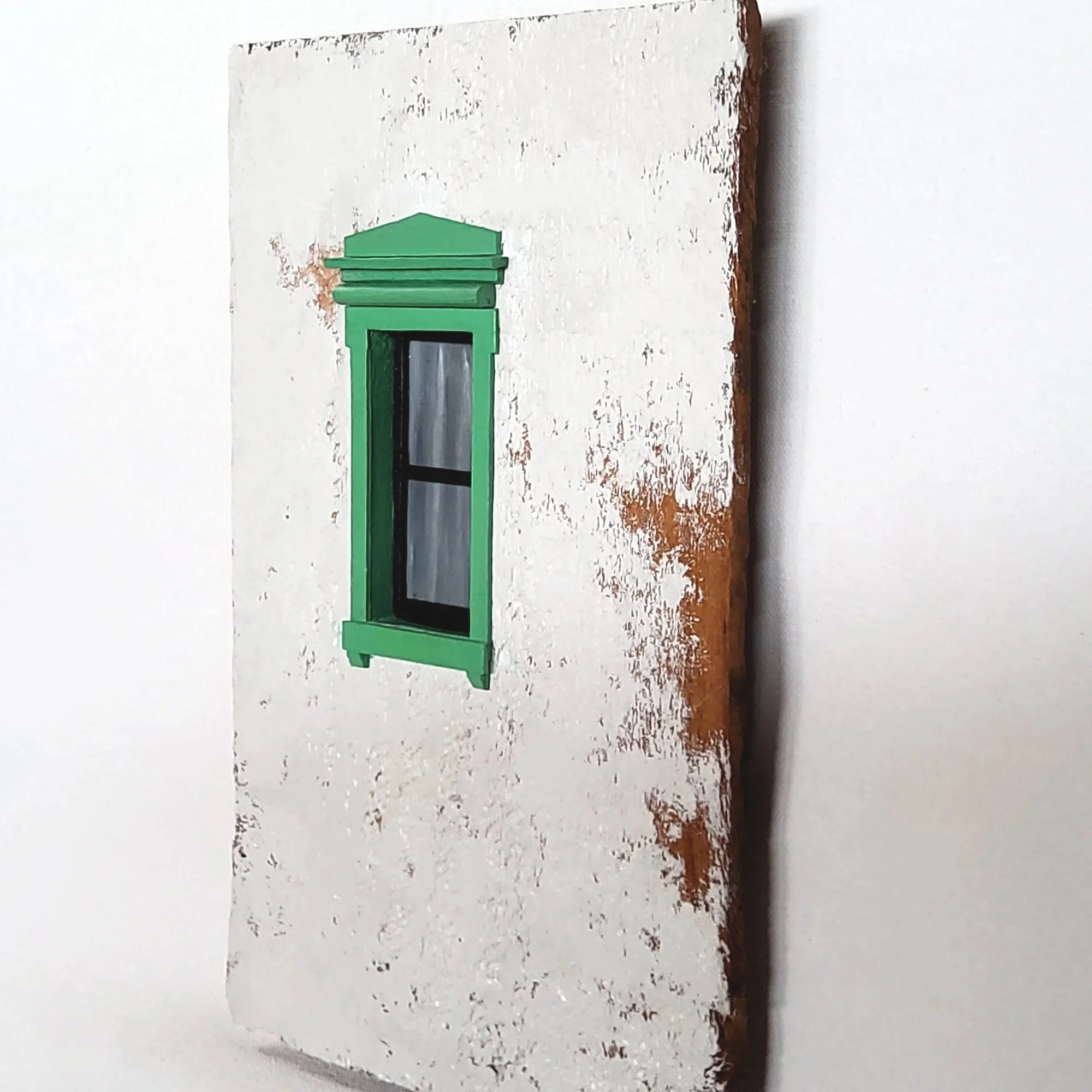 I love building the details of my 3d paintings. The tiny sash window frame, flowerboxes, stucco surfaces, all in a micro-scale that draws a heightened intimacy to my work.